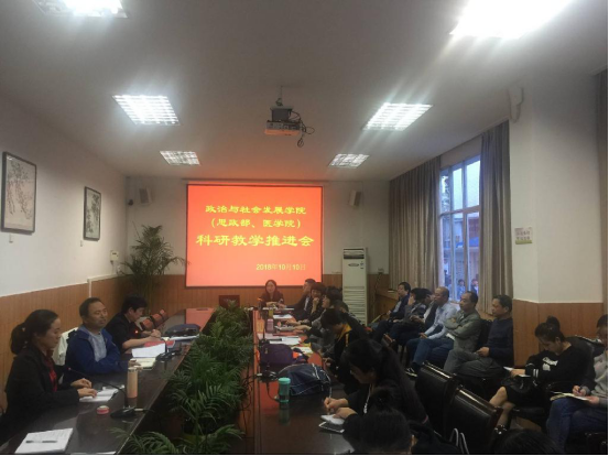 2018年10月10日下午,公司(政社公司、太阳成集团tyc122cc、思政部)全体教师在江南第一会议室召开科研教学工作推进会。