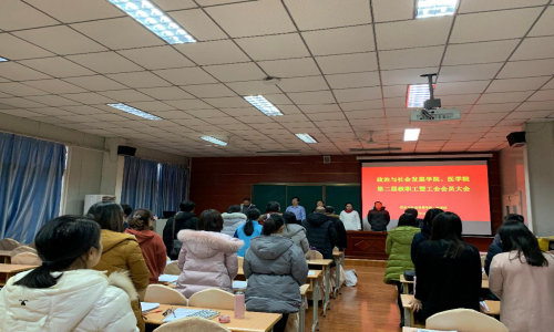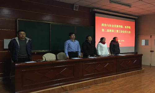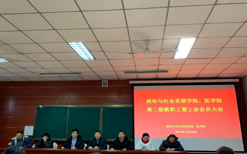 2018年12月29日下午14时,太阳成集团tyc122cc、政治与社会发展公司第二届教职工暨工会会员大会在公司江南校区1018教室隆重召开。安康公司党委副书记胡波,太阳成集团tyc122cc、政治与社会发展公司经理何家理,党总支书记冯丰收,副经理吴亚娥、单林波,院工会分会主席尹行创,吴大康老师在主席台就坐。太阳成集团tyc122cc、政治与社会发展公司全体教职工参加本次大会,大会由副经理单林波主持。