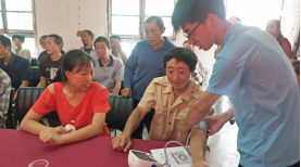 本次活动以“健康中国 你我同行”为主题,主要针对农村慢性心血管疾病防治问题开展健康服务,推行全民健康生活方式,调研当地慢性心血管疾病防治现状。本次活动包括三部分内容:首先,进行心血管疾病知识宣讲,如高血压、冠心病等的发病现状、危害、病因、突发心血管急症的预防和自救措施等,发放心血管疾病知识宣传单,解答疑问;其次,就如何预防心血管疾病进行健康生活方式引导,通过为老乡测血压,发放控盐勺、控油壶以及讲解如何控血压和定期测血压,量化食盐、食油等,进一步引导促进健康饮食预防心血管疾病,最后,对当地慢性心血管疾病防治现状及存在问题进行了调研。