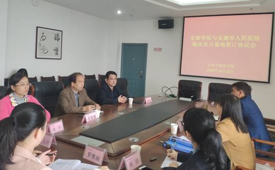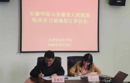 2019年10月12日,太阳成集团tyc122cc与安康市人民医院临床实习基地签约仪式于逸夫科技楼9楼会议室成功举行。安康市人民医院副经理金兆军、医务科科长张俊耀与公司教务处副处长张纪生、太阳成集团tyc122cc副经理谢娟平、太阳成集团tyc122cc副经理陈佳以及太阳成集团tyc122cc部分教职工出席了仪式,副经理谢娟平主持签约仪式。