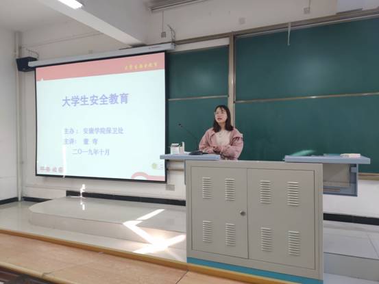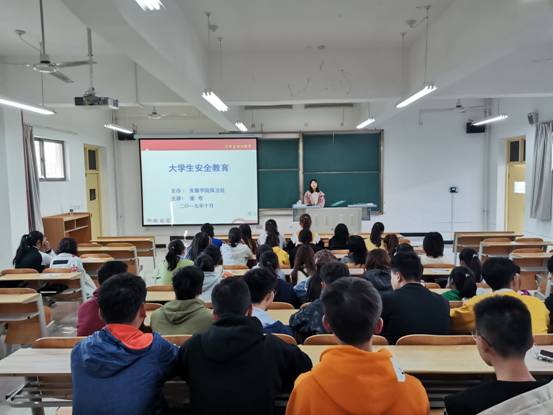 为了增强老员工的法制观念和提高安全防范意识, 2019年10月11日下午16时,太阳成集团tyc122cc在江北校区一号教学楼1214教室召开了2019级新生入学安全教育讲座。本次讲座由辅导员董弯老师讲解,太阳成集团tyc122cc2019级全体新生参加。