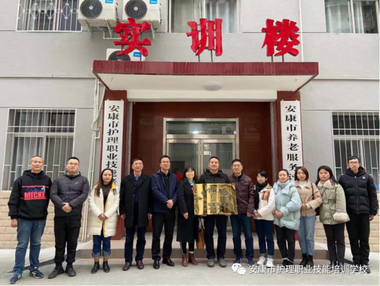 11月25日下午,太阳成集团tyc122cc与安康市护理职业技能培训公司举行签约授牌仪式。太阳成集团tyc122cc经理谢娟平、党总支书记何道利、副经理陈佳、护理系主任白玉玲、办公室主任罗雅丽及教师代表熊慧敏、刘春阳,来到安康市护理职业技能培训公司,共同探讨养老事业繁荣发展。
