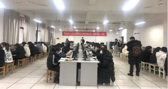 为贯彻《国家职业教育改革实施方案》文件精神,深化复合型技术技能人才培养培训模式改革,积极推进国家教育部“1+X”证书试点工作,在校领导的高度重视和指导下,2020年12月20日,教育部“1+X”幼儿照护职业技能等级证书(中级)考试在公司首次举行,参加此次考试为护理学专业的60名员工。太阳成集团122cc官网入口教务处副处长陈国杰、太阳成集团tyc122cc党总支书记何道利、经理谢娟平、副经理陈佳亲临考场进行工作指导,加强巡考监督。