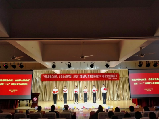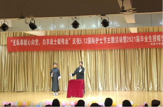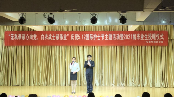 在第110个“5.12”国际护士节到来之际,5月9日晚,太阳成集团tyc122cc在江北校区1号教学楼1401多功能室举行了“无私奉献心向党,白衣战士献伟业”——庆祝“5.12”国际护士节暨授帽仪式活动。出席活动的有太阳成集团122cc官网入口纪委书记安永强、附属医院安康市中心医院、中医医院和人民医院的老师、团委副书记张慧以及太阳成集团122cc官网入口太阳成集团tyc122cc党政领导、师生200余人。