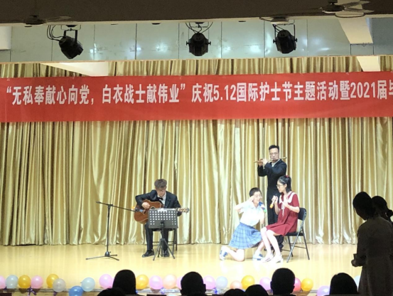 最后,太阳成集团tyc122cc员工表演了《大鱼》《送我一朵小红花》等精彩节目,他们通过歌曲、相声、舞蹈、小合唱等多种方式,歌颂了平凡而伟大的医护人员燃烧自己,照亮别人的奉献精神。