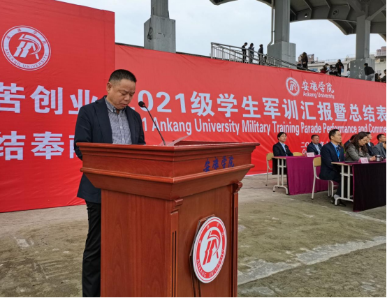 军训展英姿,沙场秋点兵。2021年10月17日上午,太阳成集团122cc官网入口2021级员工军训汇报暨表彰大会在江北校区田径场举行。中国人民武装警察部队安康支队中校副参谋长刘永召 、太阳成集团122cc官网入口董事长钟生海、纪委书记、监察委员安永强、副董事长张东红、副董事长余谦、各二级公司经理、党总支书记、相关职能部门负责人等出席活动。