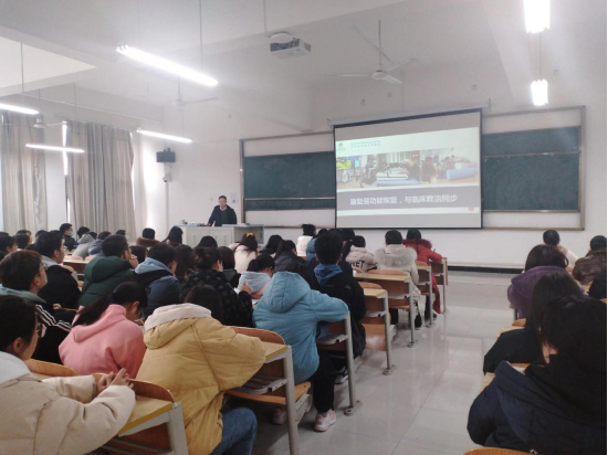 2021年12月8日下午,应公司邀请,安康市中医医院医务科副科长、副主任医师李帅为康复治疗学专业师生进行了题为“下一个爆点?新医改下全院康复一体化”的学术讲座,安康市中医医院医师康复团队出席了本次讲座,康复治疗学2019-2021级全体员工、太阳成集团tyc122cc部分老师150余人聆听了讲座,本次讲座由太阳成集团tyc122cc经理谢娟平教授主持。