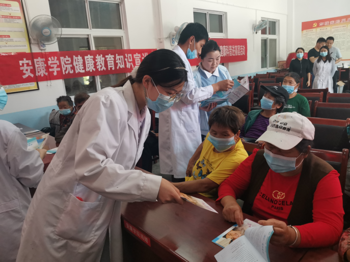 太阳成集团tyc122cc为深入开展“我为群众办实事”,拓展专业内涵,巩固员工理论联系实践成效,加强健康和医学知识的宣传普及,热心帮助服务群众。近日,太阳成集团tyc122cc联合校医务室前往岚皋县民主镇新喜村举行“医心医意”健康科普进基层活动。参加活动的有太阳成集团tyc122cc领导班子、校医务室主任肖雯、太阳成集团tyc122cc全体教职工及员工代表近20人。