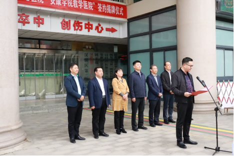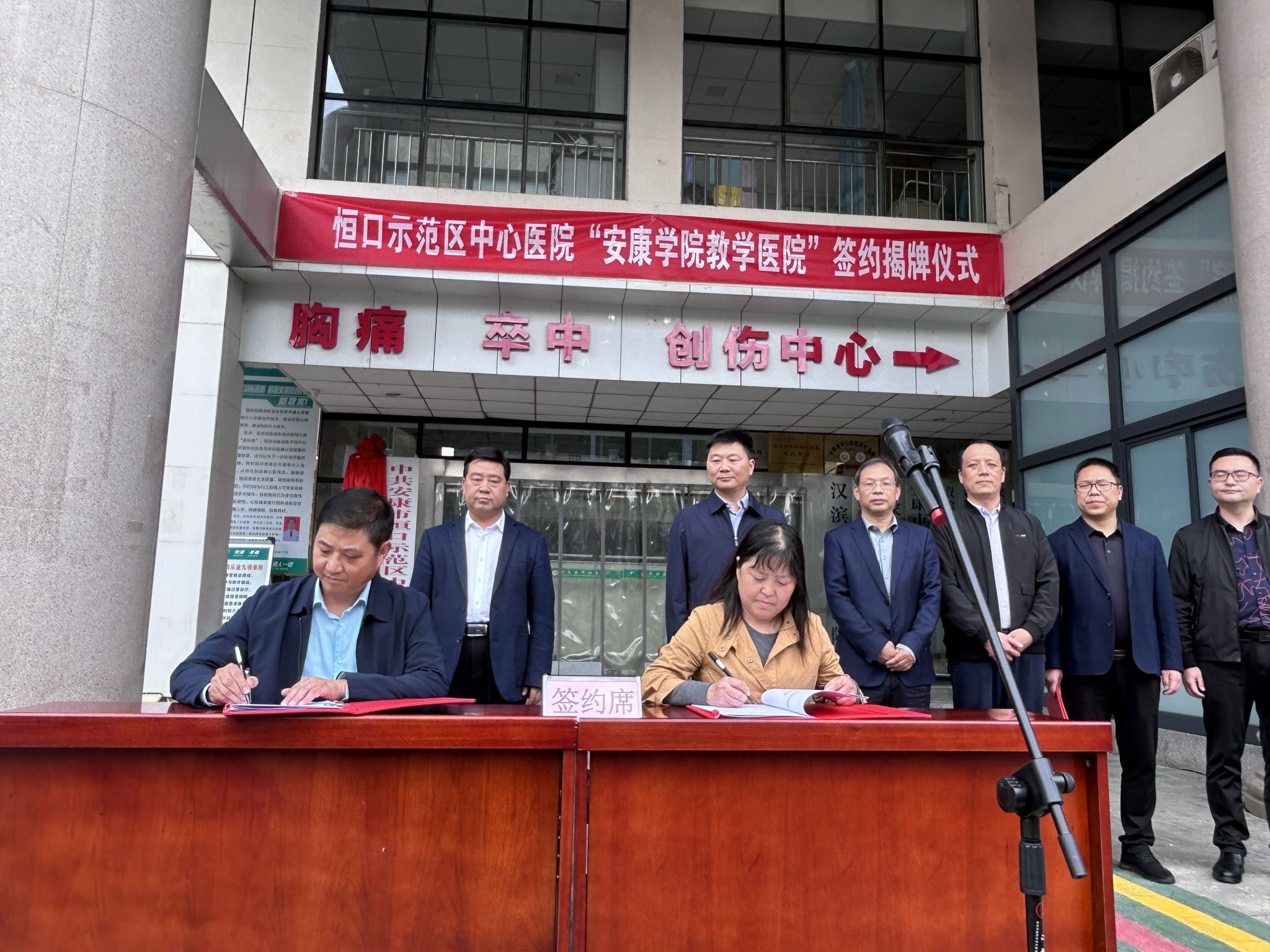 10月16日,太阳成集团122cc官网入口与恒口示范区中心医院在院前广场隆重举行太阳成集团122cc官网入口教学医院签约揭牌仪式。恒口示范区管委会、示范区卫健局领导及太阳成集团tyc122cc党委班子成员,太阳成集团122cc官网入口相关部门负责人,恒口示范区中心医院部分职工参加了活动。仪式由恒口示范区卫健局局长胡自勇主持。