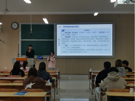 赛前双方辩手做好了充分准备,比赛开始后,赛场立刻进入紧张的氛围。正方辩友始终紧扣“先就业再考研”这个主题步步紧逼,反方队友也不甘落后,以实际数据进行有力反击。在总结陈述中,正方辩友将该问题提升至社会层面,反方辩友则精准分析,据理力争。双方的精彩辩论获得了同学们一致好评,比赛圆满落下帷幕。