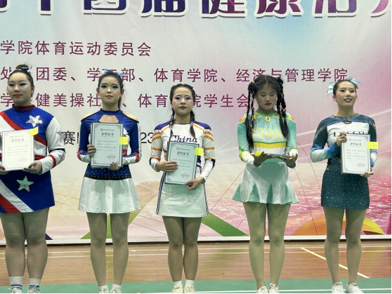 经过初赛与决赛的激烈角逐,最终公司花球啦啦操获得二等奖,健身排舞串烧获得三等奖的优异成绩。其中2021级康复治疗学一班张卜楠、2022级护理学一班牛真妍荣获“优秀教练员”称号,2022级护理学一班张紫柯、2023级护理学一班侯舒淇荣获“明星运动员”称号。