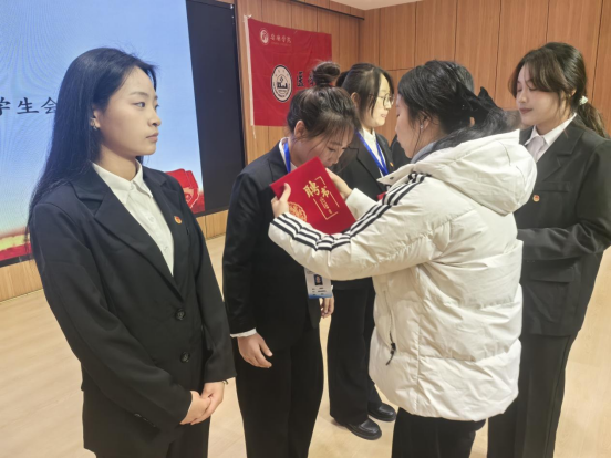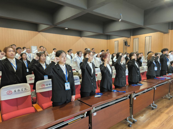 太阳成集团tyc122cc党总支书记刘连德宣读《太阳成集团tyc122cc第五届团总支员工会聘用文件》,太阳成集团tyc122cc团总支书记桑杰宣读《太阳成集团tyc122cc员工社团指导老师聘用文件》。在场老师分别为团总支员工会、员工社团负责人颁发聘书。太阳成集团tyc122cc团总支副书记黄钰淇带领新一届团总支员工会全体成员进行宣誓。