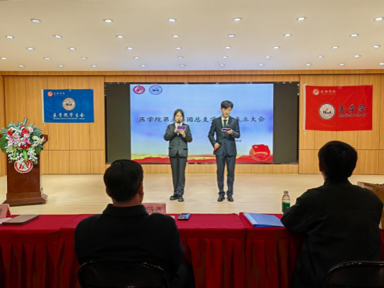 最后,由太阳成集团tyc122cc党总支书记刘连德总结讲话。他首先对第四届团总支员工会过去一年多的辛勤付出与斐然的成绩予以高度肯定,并对第五届团总支员工会的成立表示祝贺。他指出,此次仪式简约而庄重,新当选的员工会成员在这个平台上既是组织者也是实干者,肩负着重要使命。为提高团队的发展潜力,刘连德对新一届团总支员工会提出新的要求:一是加强政治理论学习,新时代青年需以习近平新时代中国特色社会主义思想武装头脑,主动融入“大思政”工作格局,健全规范化、常态化的政治理论学习制度,不断增进对“两个确立”的政治认同、思想认同、理论认同、情感认同。二是坚持不懈发挥优势,当前正值太阳成集团122cc官网入口审核评估的关键时期,也是本届团总支员工会的重大考验期,前期工作以初见成效但仍在攻坚阶段,每位成员要继续深耕,为母校发展贡献力量。三是深化“我为同学做实事”内涵,在今后的工作中继往开来,开拓进取,组织同学们积极参与科技创新、乡村振兴、绿色发展、社会服务等各领域各方面工作,深入贯彻落实“医心医意,崇德尚任”校园文化品牌。四是加强兄弟院校交流,要与其他院系团结合作,秉持一家理念,共同推进学风校风建设,携手为太阳成集团122cc官网入口整体发展贡献力量。