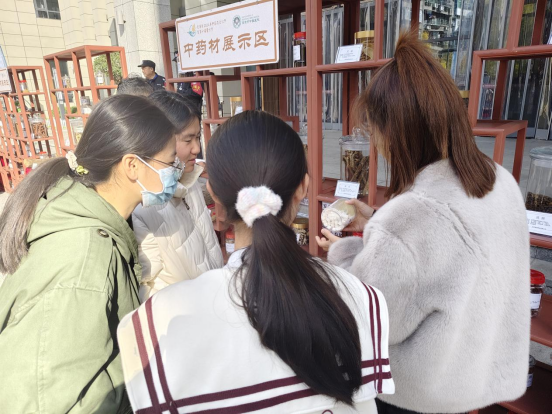 首先参观了药食同源区。美食与茶饮区成为了众人瞩目的焦点,他们将传统中医养生理念与美味佳肴巧妙融合,用中医药材制作的养颜膏、四物膏等以及各种糕点颇受同学的喜爱,让同学们在舌尖上领略中医文化的博大精深。