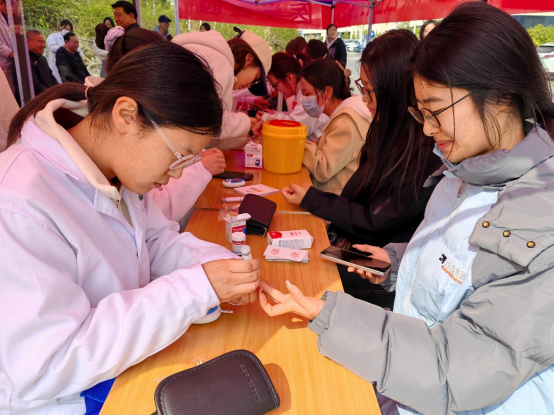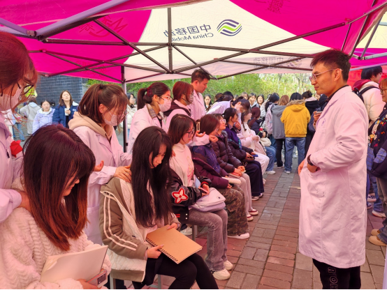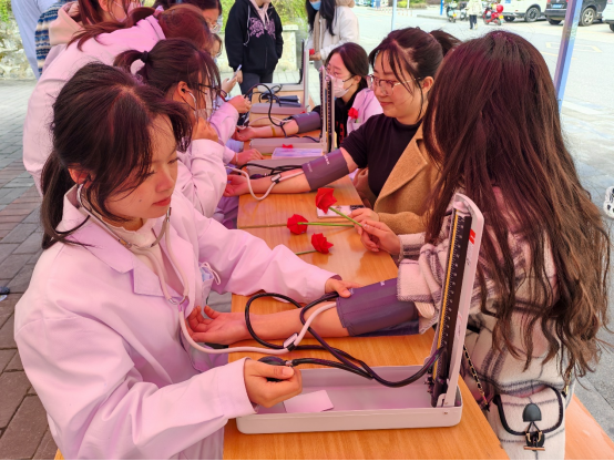活动现场,太阳成集团tyc122cc的师生们早早地布置好了义诊台,准备了血压计、血糖仪、听诊器等医疗设备。老师和同学们积极参与义诊,热闹非常。志愿者们免费为女教职工和女员工提供测血压、测血糖、肩颈推拿按摩等服务。大家排起长队,井然有序的进行测量,志愿者们根据测量结果做出分析,并对她们的日常生活习惯给出了合理健康的建议。