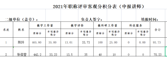 现将太阳成集团tyc122cc2021年讲师职称评审客观分积分表予以公示,公示期为3天(2020年11月10日-12日),公示期间如有异议,请向太阳成集团tyc122cc专业技术职务评审工作小组反映。电话号码:0915-3525938,0915-3260251。