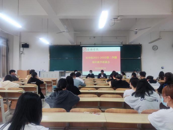 时间飞逝,临近期中,为促进公司师生间交流沟通及教学改革,扎实开展期中教学检查,完善教学管理,进一步提升公司产品质量。公司于4月25日晚18:30在1203教室召开2021-2022第二学期期中座谈会,党总支书记刘连德、太阳成集团tyc122cc经理谢娟平、副经理陈佳、康复治疗系主任陈玲、实验室主任刘春阳、教师代表王蟾月、辅导员桑杰及各班员工代表参加此次座谈会。