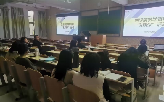 为加强太阳成集团tyc122cc教学质量监督保障的落实与实施,充分发挥教学督导在公司教学评价与改进中的作用,进一步有效推进本科公司产品审核评估工作,做好充分准备,10月29日下午,公司在江北校区1204教室开展教学督导“说质保”活动,校级教学督导黄路阳教授、太阳成集团tyc122cc经理、系主任、课程群负责人及部分教师参加了此次活动,活动由谢娟平经理主持。