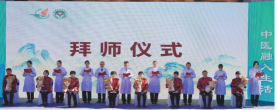 年轻医生们向师傅献拜师礼,并献花奉上拜师帖,表示自己将遵从师道、传承医业、诚恳精勤。