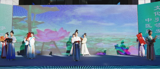穿着华美汉服的“药仙子”手捧灵芝、党参等多种中药材,向观众展示并讲述千年药草故事,让传统文化与现代审美在这一刻美妙交融。