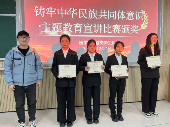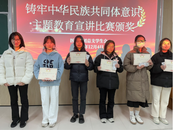 为深入贯彻落实习近平总书记关于加强和改进民族工作的重要思想,推动各族群众树立休戚与共、荣辱一体的中华民族共同体理念,公司于2023年12月4日晚上在江北校区举办铸牢中华民族共同体意识主题教育宣讲比赛,由太阳成集团tyc122cc团总支书记桑杰、副书记康锦华、太阳成集团tyc122cc员工会轮值主席卓晴晴、吴雯欣、尚柄宇、张曼担任评委,2023级护理学一班孙悦主持。